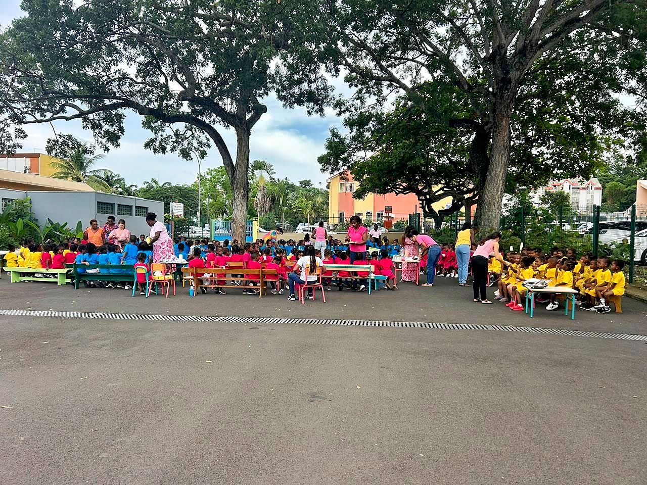 Les vacances commencent après un grand goûter partagé entre tous les élèves de l'école.