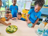 Toute la semaine, les élèves ont fait des ateliers de dégustation et des recettes autour des 4 saveurs : le salé, le sucré, l'amer et l'acide.